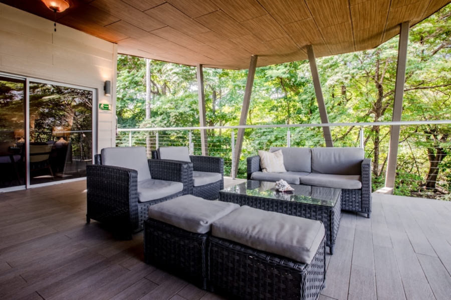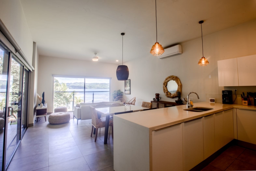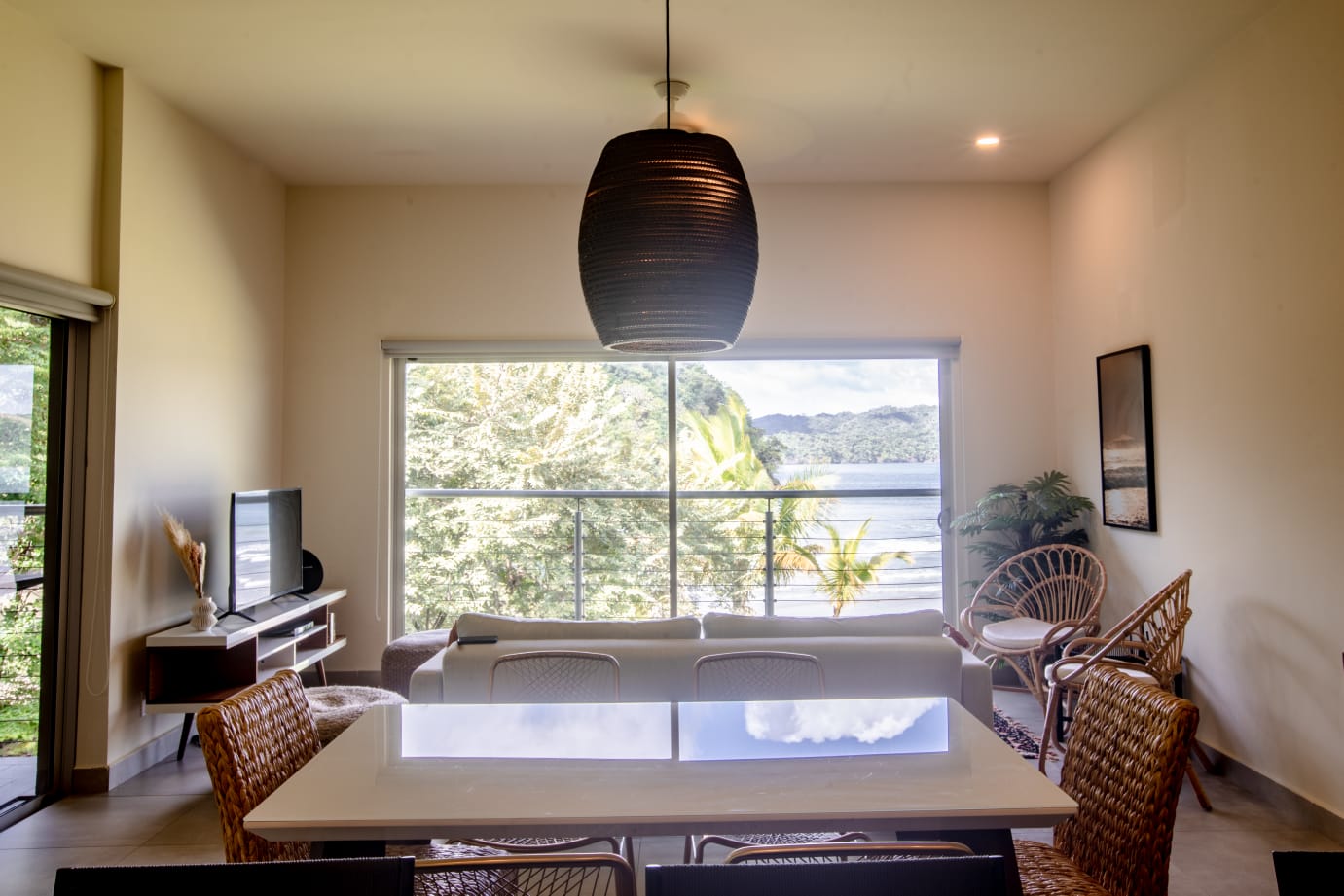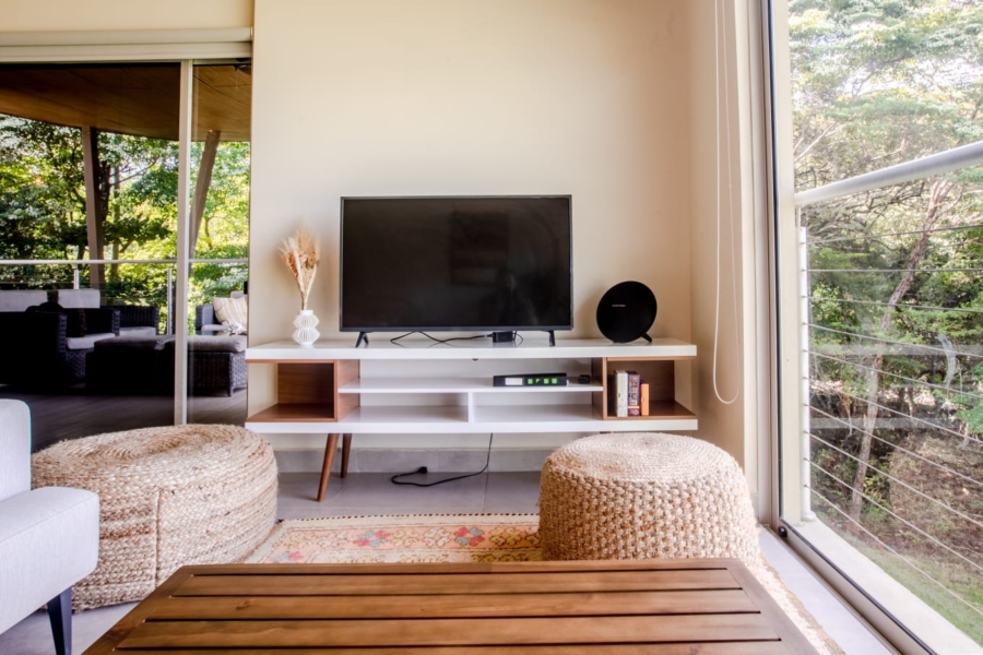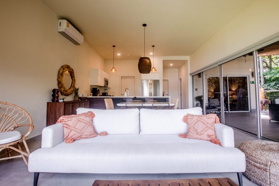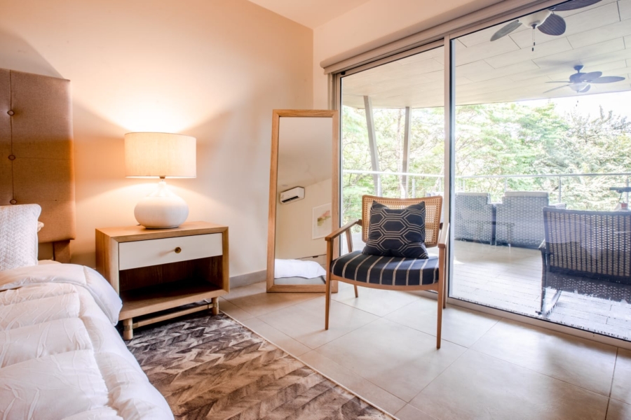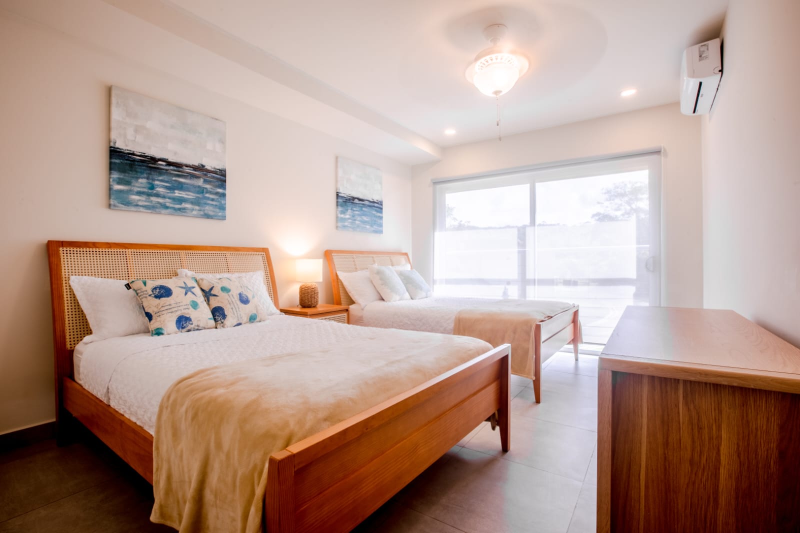 BEDROOMS Master Bedroom: Enjoy a comfortable king bed with imported mattresses from the US ensuring a very comfortable night of sleep with a private master bathroom to maximize privacy and comfort. The room boasts blackout curtains and access to the deck giving you immediate beach views in the morning. There is plenty of closet space and a dresser for all of your storage needs. Room 2: Two full beds with plenty of closet space for kids or friends to comfortably enjoy a room together COMMON AREAS Kitchen: Open kitchen area so that the whole group can enjoy time together while preparing food, fully stocked with everything you could need to prepare your own meals Dining: Six-person dining table plus island seating to accommodate the entire group Living: Modern seating area with an HD Smart TV, comfortable rug, and Moroccan styling transporting you to a new relaxing vacation spot Outdoor: Amazing terrace with beach and ocean views, dining table, and seating areas to enjoy the perfect Panamanian weather