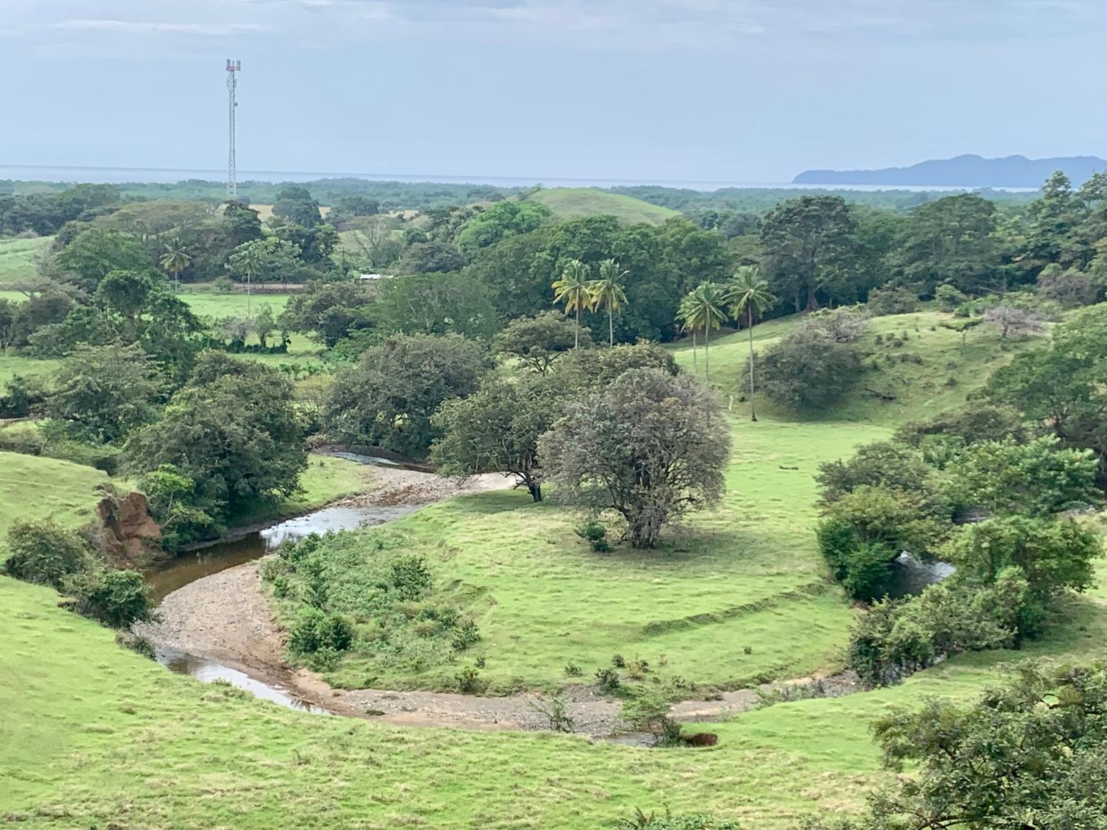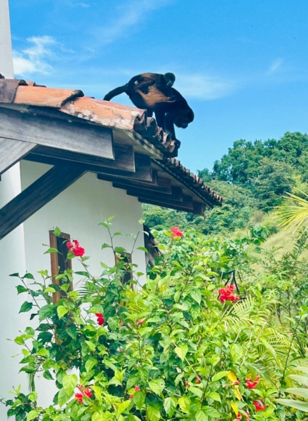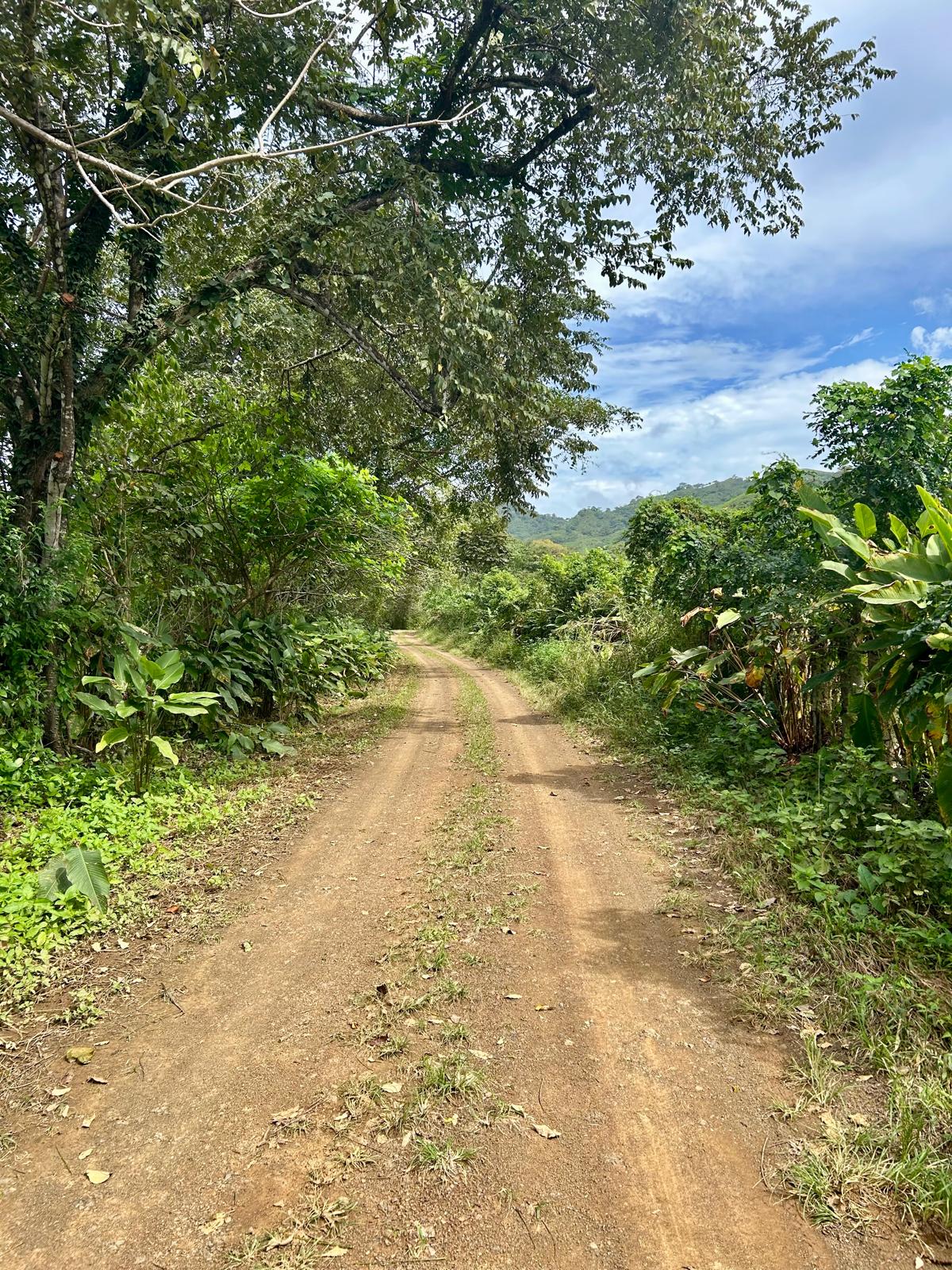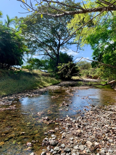 The land itself is a living ecosystem, reforested with hundreds of hardwood and fruit trees and bordered by a river featuring multiple natural freshwater swimming holes. Mature and fruiting plantings include mango, pineapple, papaya, coconut, mamón, tamarind, orange, naranjilla, lime, banana, plantain, guava, passion fruit, avocado, soursop, achiote, yucca, and flor de Jamaica—providing year-round harvests. Wildlife is abundant, with parakeets, parrots, owls, and frequent visits from howler and capuchin monkeys moving through the trees overhead.