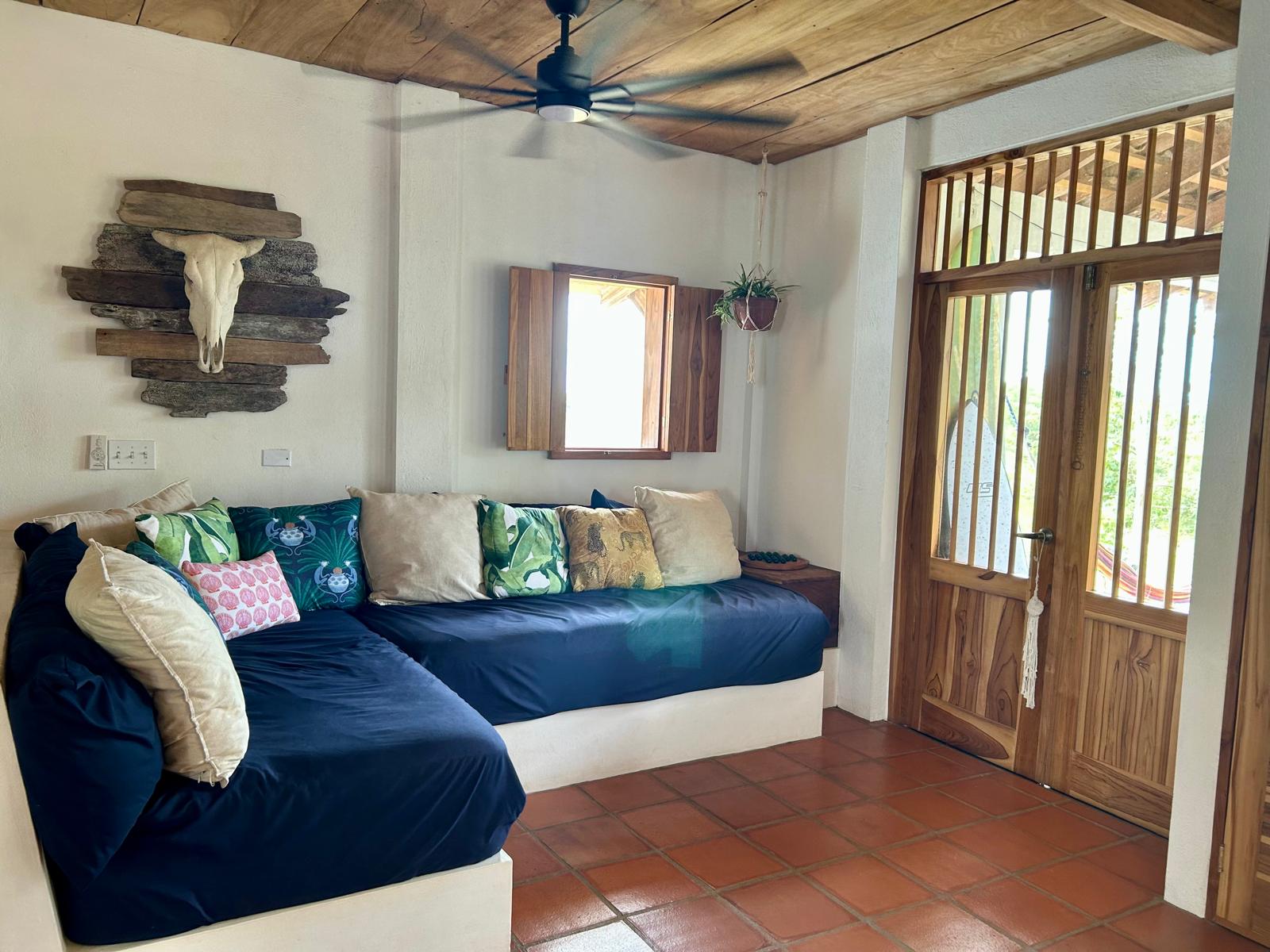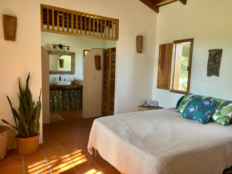 Constructed by an American builder, the Spanish-style two-bedroom, two-bathroom residence is thoughtfully sited to capture cooling trade winds and opens to a large covered terrace, ideal for outdoor living year-round. Traditional craftsmanship is showcased throughout, from reclaimed clay roof tiles layered over an asphalt roof for durability and pest protection, local clay tile floors, and custom-built corotu furniture. Handcrafted light fixtures, mirrors, and driftwood hardware add distinctive character, while the home is offered fully furnished, allowing for immediate enjoyment.